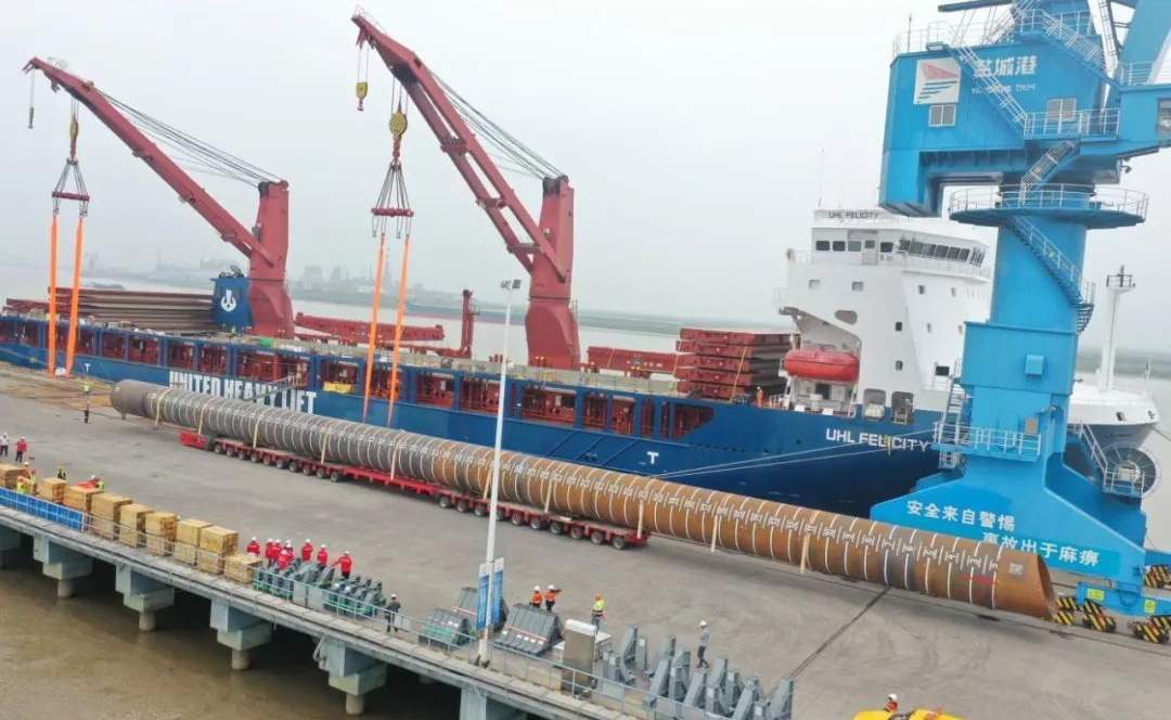 “幸福號”貨輪承載著江蘇天能海洋重工有限公司精心制造的尖端管樁裝備,這些“大國重器”將遠赴中東,為當地油氣資源開發提供關鍵基礎設施支持。全船共裝載45件管樁及配套鋼結構,其中管樁長度普遍超過40米,最長達76.8米,單件最大重量突破377噸,堪稱“海上鋼鐵巨龍”。