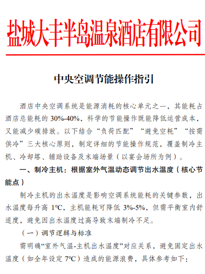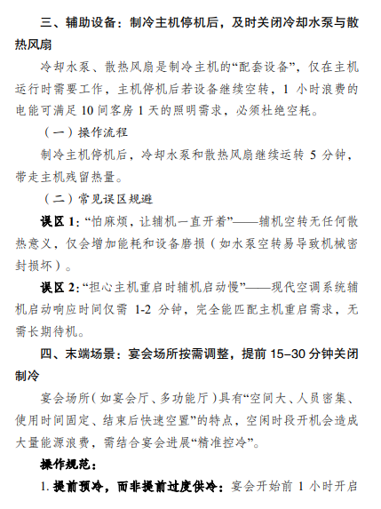 酒店專門(mén)編制空調(diào)節(jié)能操作指南,圍繞“負(fù)荷匹配、避免空耗、按需供冷”三大原則,通過(guò)靈活調(diào)節(jié)水溫、分時(shí)運(yùn)行風(fēng)機(jī)、合理預(yù)判宴會(huì)需求等方式,從設(shè)備運(yùn)行到場(chǎng)景適配全流程優(yōu)化,節(jié)電效果顯著。