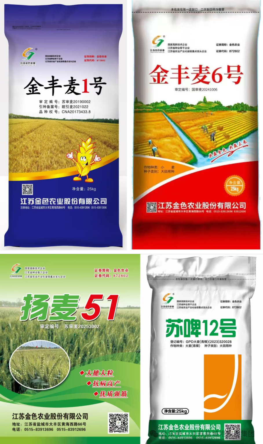 種子是農業的“芯片”,選對良種,就等于握住了高產的“主動權”。公司憑借豐富的品種儲備,精選出金豐麥1號至6 號、揚麥51及蘇啤12號等優質小麥品種,這些品種不僅抗病性強、抗逆性佳,更具備優異的產量潛力,能適配不同土壤與氣候條件。