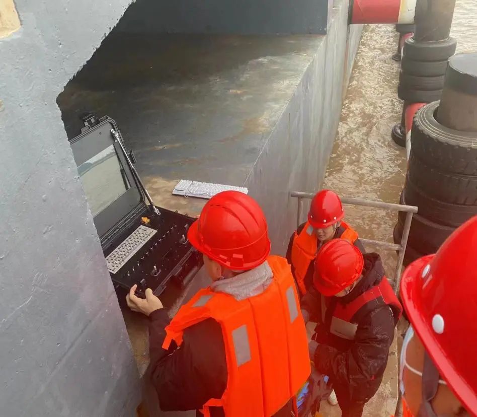 ▲勘測(cè)公司與江蘇科技大學(xué)在大豐港區(qū)安保船碼頭進(jìn)行了水下機(jī)器人作業(yè)環(huán)境調(diào)研。