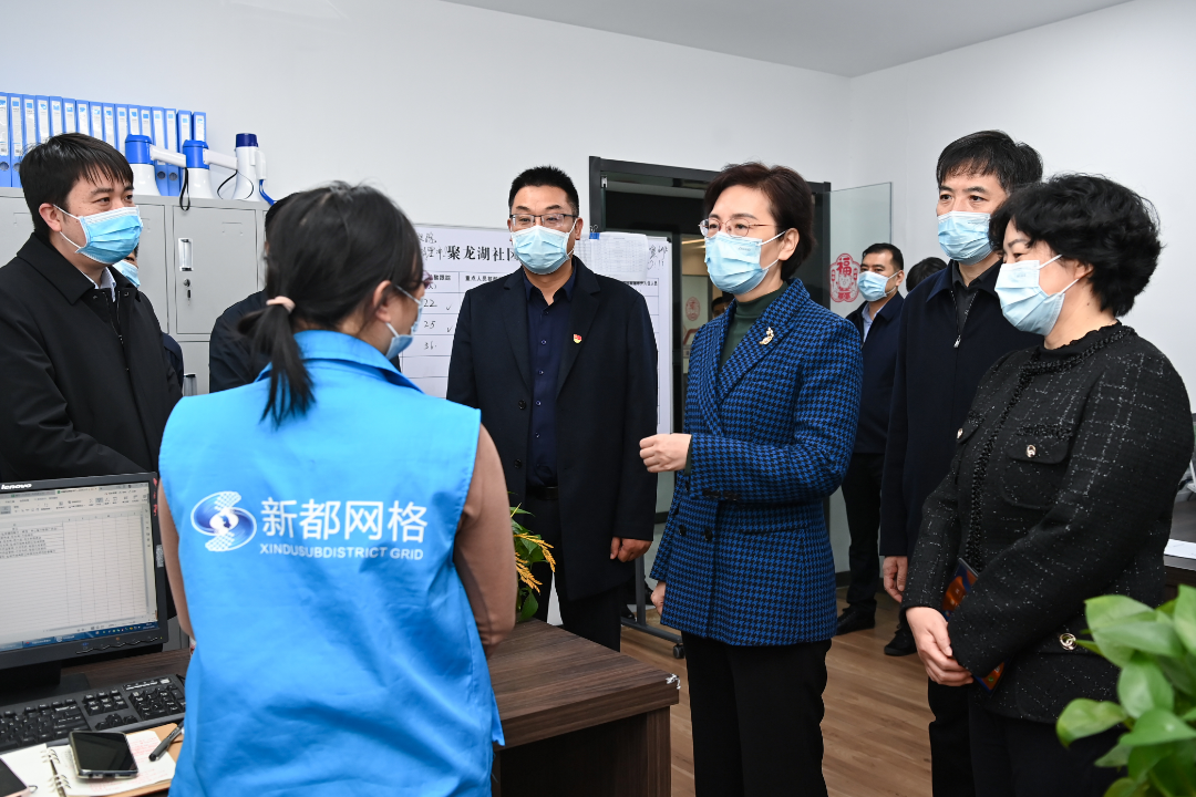 社區是疫情防控的基礎單元。在聚龍湖社區,徐纓仔細檢查臺賬資料,詳細了解防控人員履職情況,要求注重信息賦能,充分發揮網格員和志愿者作用,深入摸排重點人群和重點區域,做到底數清、情況明。要加強防控政策宣傳解讀,用心用情用力做好群眾服務、爭取更多支持,牢牢把握工作主動權。