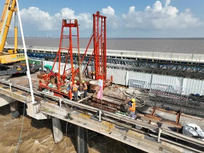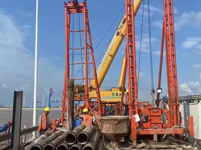 連日來,在鹽城港大豐港區(qū)一期碼頭引橋施工現(xiàn)場,施工人員頭頂烈日、腳踏熱浪,有條不紊地進行著鋼筋籠制作、鋼護筒安裝、混凝土澆筑等一道道工序,運輸車輛穿梭其中,呈現(xiàn)出一派繁榮的景象。