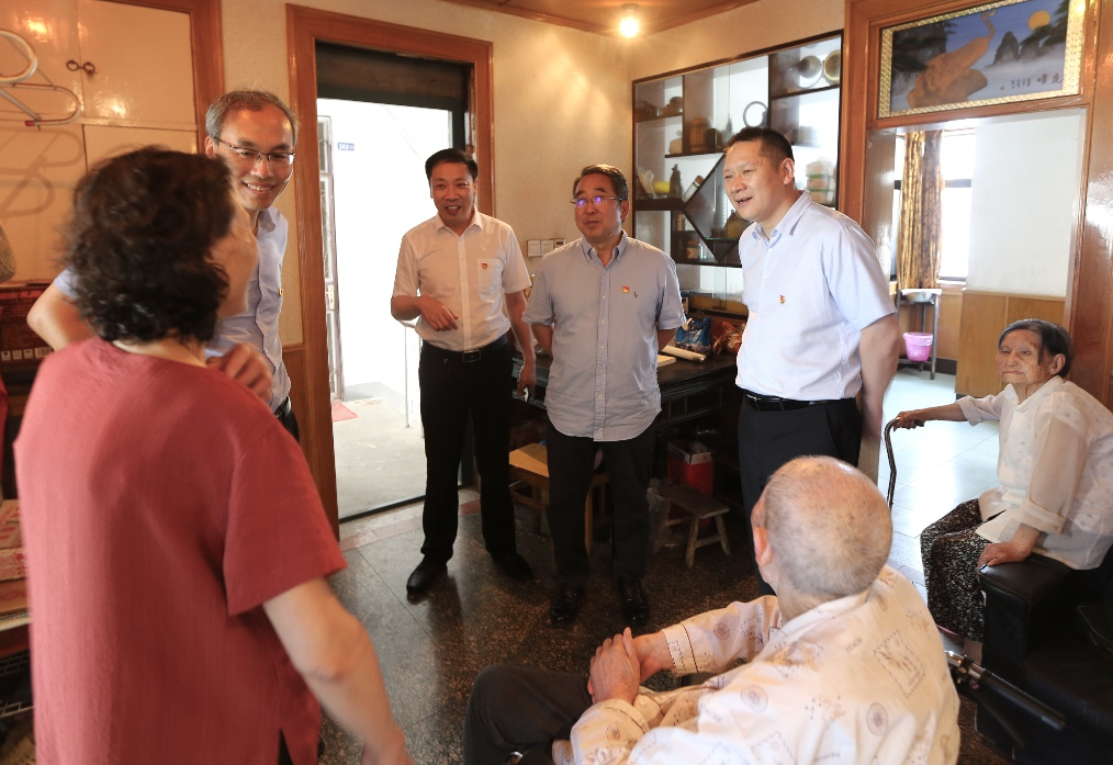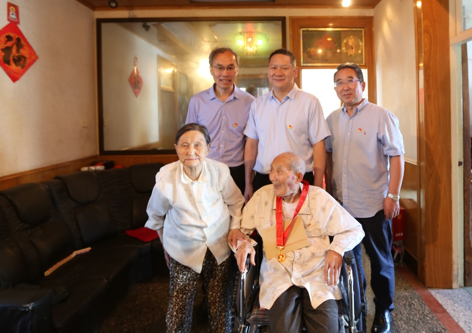 在建國前入黨老黨員奚正銀老人家中,陳正華看到97歲的老人身體硬朗、精神矍鑠,感到十分高興。他握著老人的手認真詢問老人的生活及兒女就業工作情況,并為老人戴上“光榮在黨50年”紀念章,送上慰問金,感謝他長期以來為黨和國家作出的積極貢獻,并囑咐他保重身體。同時,陳正華還要求隨行青年黨員積極向老同志學習,定期上門開展志愿服務活動,陪伴老黨員、傾聽他們曾經的故事,在向革命前輩學習革命精神的同時,將黨最新的方針政策、會議精神及時傳達給老黨員。