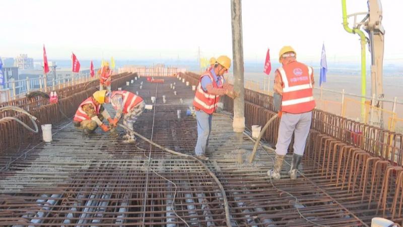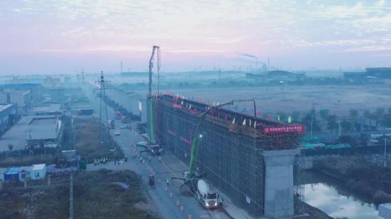 “我們承建的大豐港特大橋全長17.949公里,目前項目首個支架現澆梁一次性澆筑已完成,連續梁澆筑的完成標志著大豐港鐵路支線施工建設進入新的階段。”大豐港鐵路支線工程3標經理部現場負責人陳甫軍告訴記者。