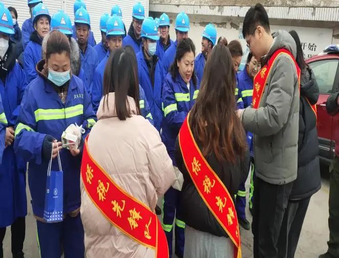 有那么一群人,不論烈日當空還是天寒地凍,日復一日用辛勤勞動保障城市清潔、揮灑汗水書寫城市美好,他們是城市的美容師、是美麗的保衛者——環衛工人。為向平凡又偉大的環衛工人致敬,給他們送去溫暖,保稅先鋒隊隊員們走上大豐街頭,為環衛工人送去早飯和生活物品,并向他們道一聲“您辛苦了”。