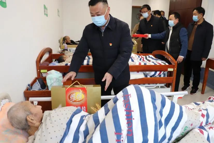 捐贈儀式結束后,周旭東一行還走進康養病房,親切地給入住的老人們送上新春的祝福。
