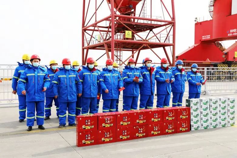在大豐港區(qū)集裝箱碼頭,周正雄和堅(jiān)守崗位的工作人員一一握手,感謝大家的默默奉獻(xiàn),為保障港口安全平穩(wěn)運(yùn)行而付出的努力,并向他們送上慰問(wèn)品。他說(shuō),去年以來(lái),集團(tuán)統(tǒng)籌做好安全生產(chǎn)和疫情防控各項(xiàng)工作,并取得了良好的業(yè)績(jī),這離不開(kāi)全體員工的共同努力和無(wú)私奉獻(xiàn),離不開(kāi)員工家屬對(duì)集團(tuán)的信任和關(guān)心,更離不開(kāi)家屬們對(duì)員工的支持和理解。希望全體員工按照集團(tuán)黨委的要求,切實(shí)利用好“早晨會(huì)、晚匯報(bào)”這一工作模式,對(duì)晨會(huì)的形式和內(nèi)容進(jìn)行再融合再提升,更加全身心地投入工作,全力打造出一支港口鐵軍隊(duì)伍,為鹽城港人樹(shù)立榜樣,全面激活港口活力,增強(qiáng)發(fā)展后勁,為完成全年和各項(xiàng)工作目標(biāo)而繼續(xù)努力、繼續(xù)奮斗。
