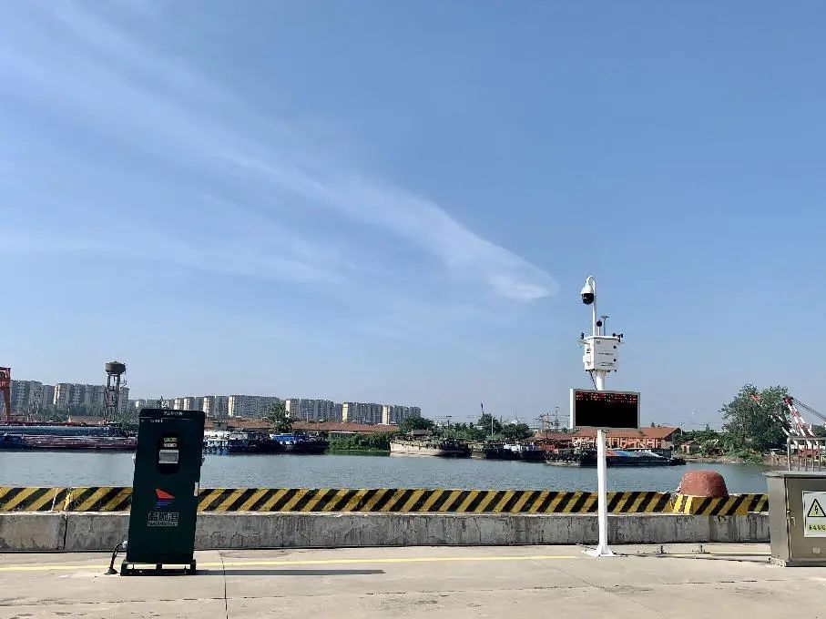 水上服務(wù)區(qū)岸線綠色能源充電樁、粉塵監(jiān)測(cè)儀。