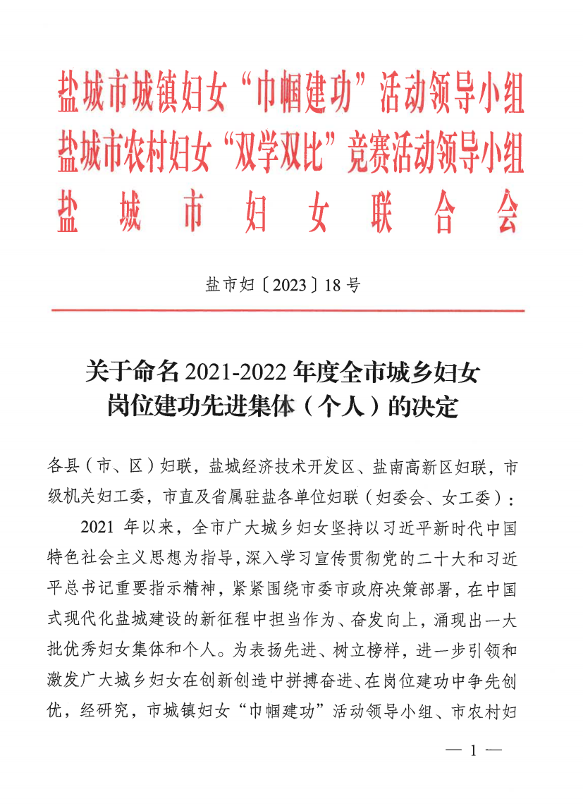 ????近日,市城鎮婦女“巾幗建功”活動領導小組、市農村婦女“雙學雙比”競賽活動領導小組、市婦女聯合會聯合發布《關于命名2021-2022年度全市城鄉婦女崗位建功先進集體(個人)的決定》,鹽城港智慧港口公司海燕班組榮獲“2021-2022年度鹽城市巾幗文明崗”榮譽稱號,鹽城港項目建設管理咨詢公司黨總支書記、執行董事、總經理劉春燕榮獲“2021-2022年度鹽城市巾幗建功標兵”榮譽稱號。