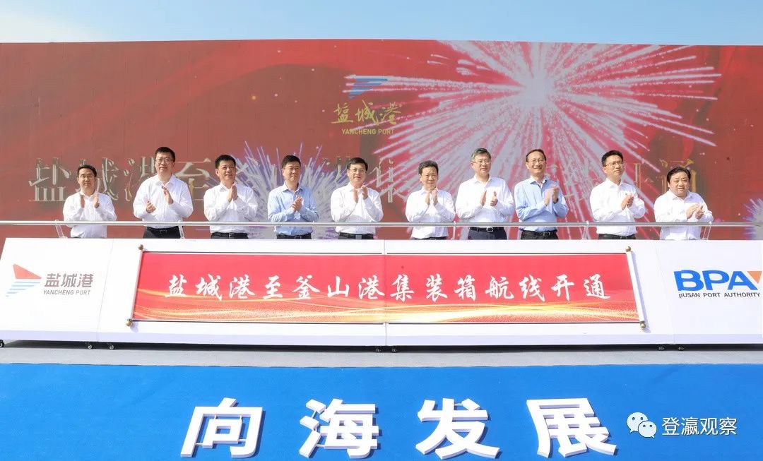 ▲鹽城港至韓國釜山港國際直達集裝箱班輪航線正式開航