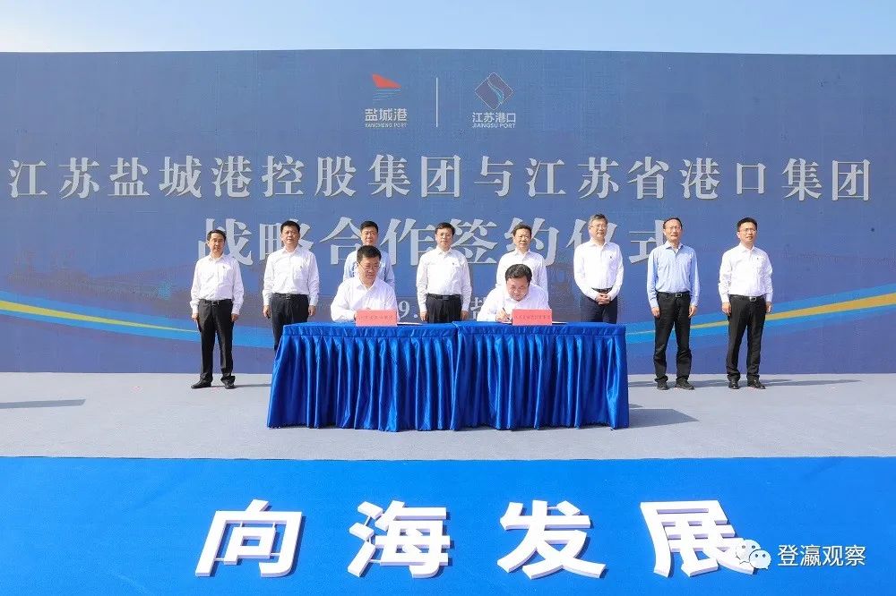 ▲江蘇鹽城港控股集團與江蘇省港口集團舉行戰(zhàn)略合作簽約儀式