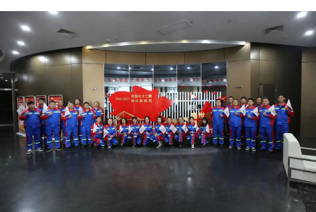 活動中,全體職工們揮舞著黨旗,聲情并茂、意氣風發,用振奮人心的紅色旋律為祖國72周年華誕獻禮。現場高亢的歌聲、優美的旋律、豪邁的氣勢,無一不充分體現了鹽城港人昂揚向上的精神風貌。