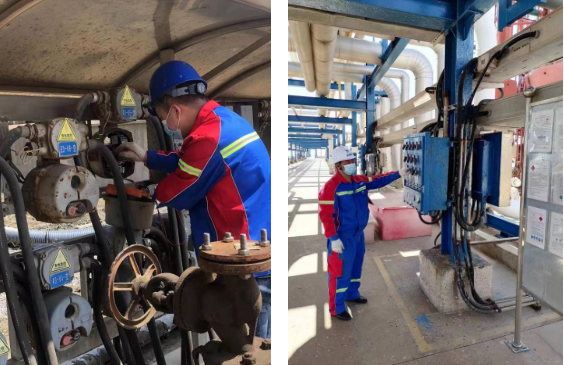 為切實做好各類事故防范,石化碼頭加強對重點區(qū)域、重點部位的檢查,逐一核查所有泊位的水管線、閥門的排水,并全部采取保溫措施,杜絕出現(xiàn)“跑、冒、滴、漏”現(xiàn)象,確保極寒天氣下工藝管線保持正常運行狀態(tài)。為確保在突發(fā)情況下輸油臂能夠及時收回、正常鎖定,石化碼頭各泊位工作人員對輸油臂內臂、外臂鎖定裝置和固定繩進行了專項檢查維護,并在潤滑保養(yǎng)項目中對鎖定裝置進行保養(yǎng)維護,保障輸油臂在冬季正常作業(yè)。同時,工作人員還對設備高處防風固定裝置進行檢查,全面做好對罩棚、施工擋板、腳手架以及爬梯等其他高空設施的加固工作。