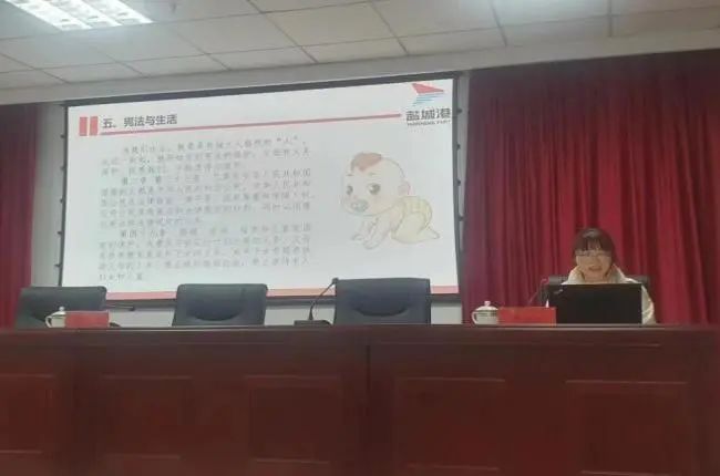 濱海港區法務部相關人員向大家闡述了習近平法治思想的重大意義和深刻內涵,重點闡述了憲法的含義、憲法的結構與內容、憲法與生活、憲法的發展歷程等內容,以案例分析、情景再現、互問互答等方式闡明了企業日常工作管理合規經營的重要性,造濃全體員工知法、守法、執法、用法的氛圍。