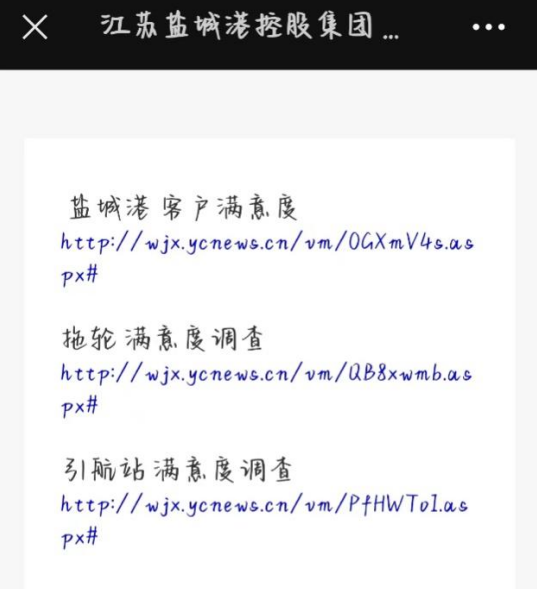 1.鹽城港客戶滿意度問卷調(diào)查鏈接: