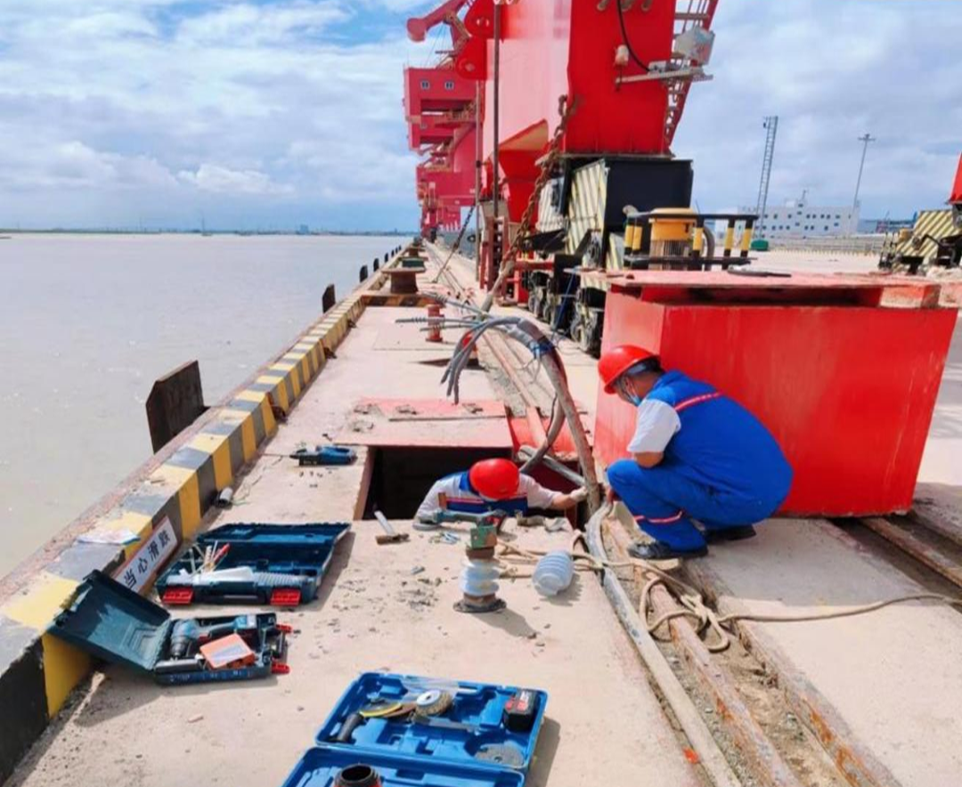碼頭設(shè)備使用下沉式接電箱,海水濕氣大腐蝕性極強(qiáng),設(shè)備組定期對電箱高壓進(jìn)線終端進(jìn)行檢查,對有問題的立即整改。保障碼頭正常作業(yè),為完成全年目標(biāo)任務(wù)奠定堅(jiān)實(shí)基礎(chǔ)。