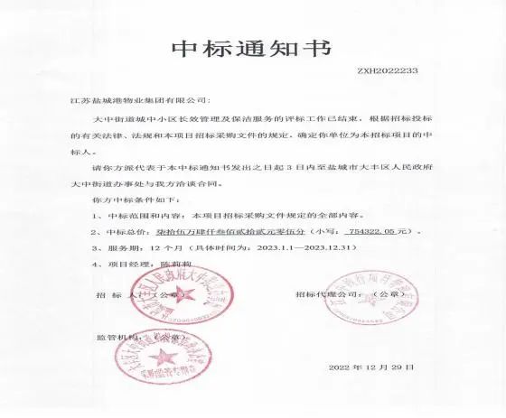 拓市場(chǎng),保增長(zhǎng),項(xiàng)目業(yè)績(jī)創(chuàng)一流。實(shí)業(yè)集團(tuán)在提升物業(yè)服務(wù)質(zhì)量、房屋租賃水平,擴(kuò)大鹽城港集團(tuán)“內(nèi)循環(huán)”的同時(shí),逐步向外部市場(chǎng)拓展。1月,黃海港城公司與中天大豐電纜有限公司成功簽訂員工宿舍租賃存量住宅業(yè)務(wù)合同,合同金額近30萬(wàn)元。物業(yè)公司成功中標(biāo)大中街道城中小區(qū)長(zhǎng)效管理及保潔服務(wù),中標(biāo)價(jià)約75萬(wàn)元。