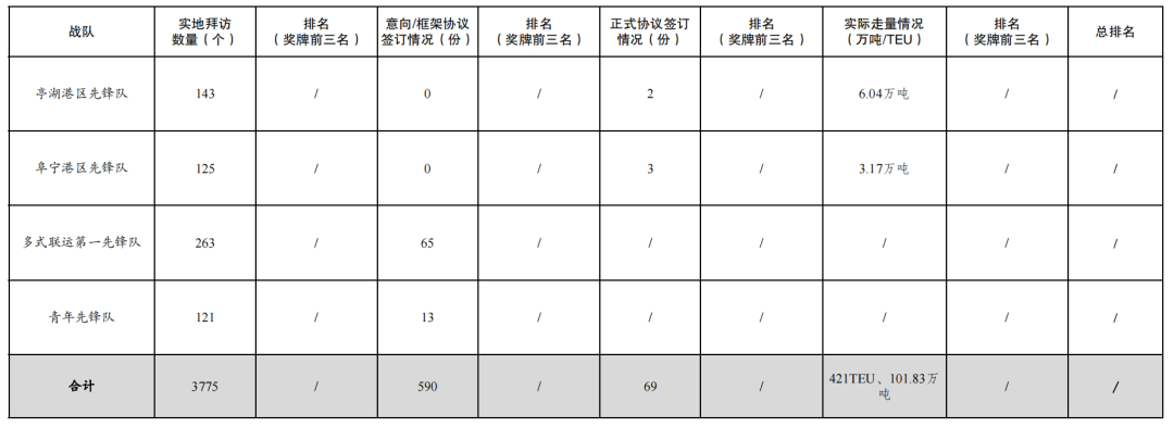活動(dòng)開展以來,累計(jì)拜訪客戶數(shù)量3775家,簽訂意向/框架協(xié)議數(shù)量590份,簽訂正式協(xié)議69份,實(shí)際走量421TEU、101.83萬噸。