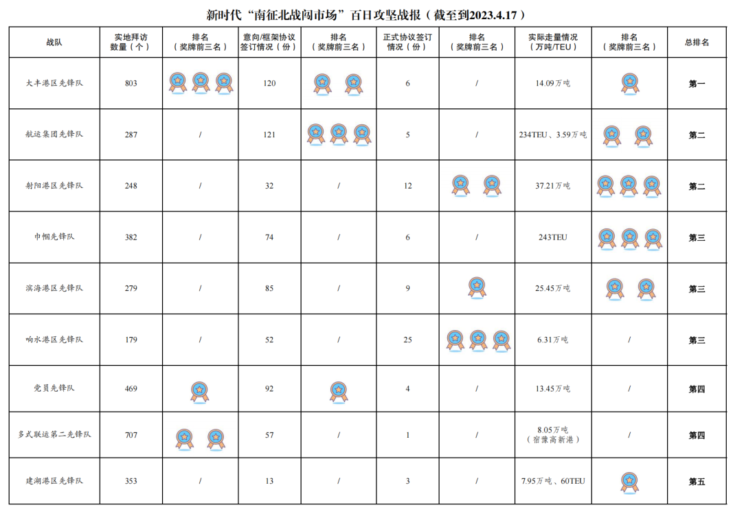 1.累計拜訪客戶數(shù)量4474家:其中大豐港區(qū)先鋒隊803家,多式聯(lián)運第二先鋒隊707家,黨員先鋒隊469家,巾幗先鋒隊382家,建湖港區(qū)先鋒隊353家,多式聯(lián)運第一先鋒隊332家,航運集團先鋒隊287家,濱海港區(qū)先鋒隊279家,射陽港區(qū)先鋒隊248家,響水港區(qū)先鋒隊179家,亭湖港區(qū)先鋒隊166家,青年先鋒隊142家,阜寧港區(qū)先鋒隊127家。
