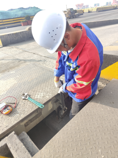 他停留在一臺(tái)地磅姥爺旁邊 偶爾會(huì)觸碰撫摸