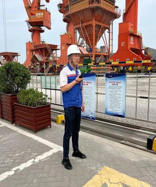 92年出生的朱道雄,中共黨員,2010年服役于陸軍第27集團軍的他,曾獲得過個人三等功和優秀士兵等榮譽稱號。2022年7月轉業入職于濱海港區港務公司生產組,軍人那特有的氣質使他無論干什么工作都有一股韌勁。7月份以來,連日的高溫酷暑持續“霸屏”,35?的氣溫接續攀升,酷暑當前,為了保障港口運行順暢,退伍軍人朱道雄沒有半刻“清閑”,主動請纓,高溫季節合理安排作業計劃,在保障人員安全的同時,及時調整門機與船艙距離;統籌協調裝卸作業、車輛運輸,確保船舶能按時靠離泊。朱道雄指揮若定,夜以繼日奮戰在碼頭一線,用敬業和堅守勾勒出鹽城港濱海港區最美的身影。