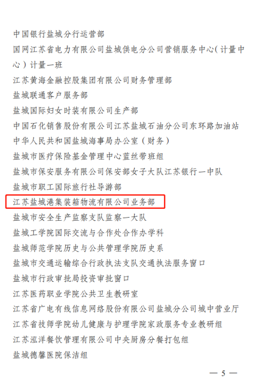 近日,市總工會發(fā)布《關(guān)于表揚(yáng)鹽城市女職工先進(jìn)集體和先進(jìn)個人的決定》,袁欣同志、江蘇鹽城港集裝箱物流有限公司業(yè)務(wù)部,分別獲得“鹽城市五一巾幗標(biāo)兵”“鹽城市五一巾幗標(biāo)兵崗”榮譽(yù)稱號。